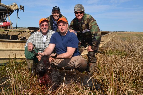 Well before 1 p.m. it was obvious that his boat wouldn’t carry the whole kill, and hunters began loading hogs in their airboats.
