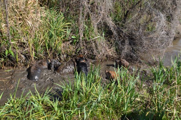 Hogs were everywhere. Some were being openly pursued by dogs. Others were sneakers, trying to slip out of the way of all the commotion.
