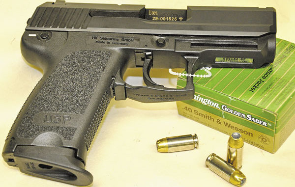 He carried a Heckler & Koch USP Compact in .40 Smith & Wesson caliber. This is a smaller double-action pistol with a polymer frame and de-cocker button. It carries 12 rounds in the magazine. He had it loaded with Golden Saber hollow-point ammunition.