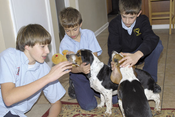 By 9:15 am, Bonano and Danos start loudly trilling a rebel yell, the call to the dogs that tells them the hunt is over. As they come in, they actually look as if they are smiling, in spite of having bloody tail tips from their excited wagging in the briars.