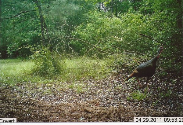 After killing a tom on Camp David, I noticed the turkeys seemed to disappear. But after doing some clipping and plowing in preparation for the spring planting, the trail cameras started photographing hens and jakes (probably the four that had been feeding on the property all year).