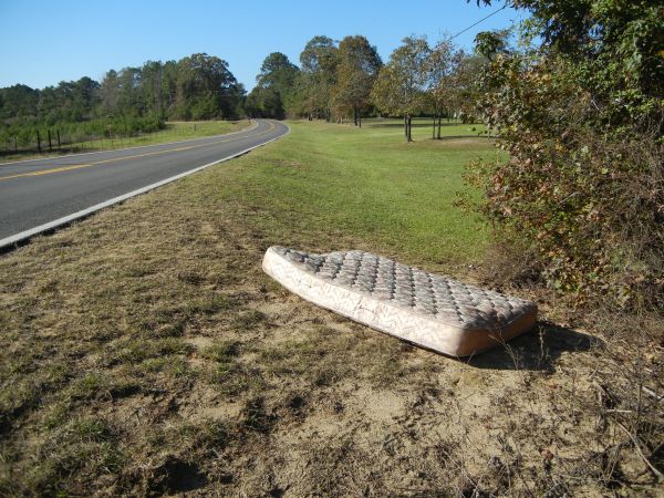 But this morning I turned from my driveway onto the state highway and did not get 200 yards up the road before finding an old bed mattress dumped at roadside in very plain view.