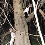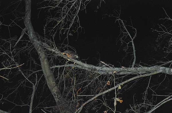 “Two big coons,” commented one of the hunters after shining the tree briefly with his headlight.