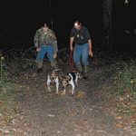 Well advanced from the three were the dogs’ handlers, Whit Harvey and Brad Gottschalck, both of Central. In the faint starlight, I could see these two silent men were clearly in a zone, and seemed to be projecting their spirits through the dark woods to hover over their trailing hounds.