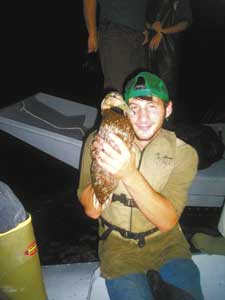When the bags get full, the boats head to a prearranged meeting site, where each bird is sexed, aged and recorded along with an identification number on a U.S. Fish & Wildlife band that is attached to its left leg.