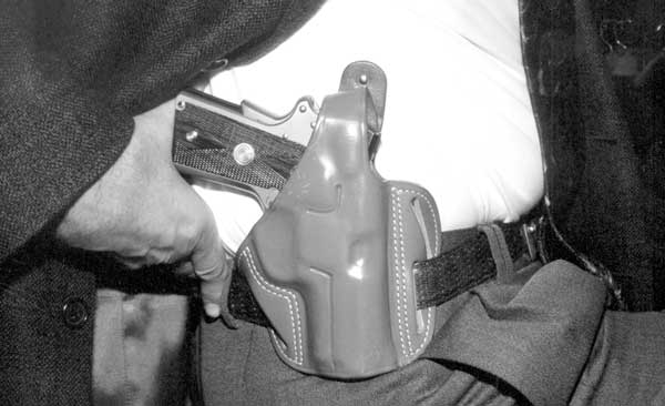 So it’s a handsome gun, pleasing to the eye, pleasing to hold and a pleasure to shoot. What about carry? I found a well-made leather holster by Old World after some searching of the ample collection at Baton Rouge Police Supply. They just don’t have a lot of call for holsters for 1911-style compacts. Not a lot of law enforcement agencies are carrying such, remember. But we found one that worked well, and I started packing.