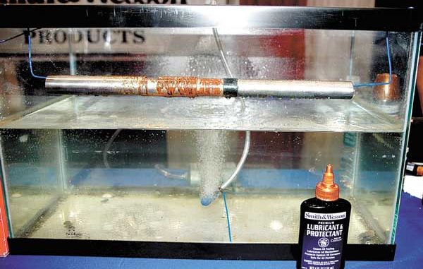 But the barrel treated with the S&W protectant lasted for hundreds of hours without showing any loss of protection. A company statement says the product will protect against corrosion for more than 700 hours.