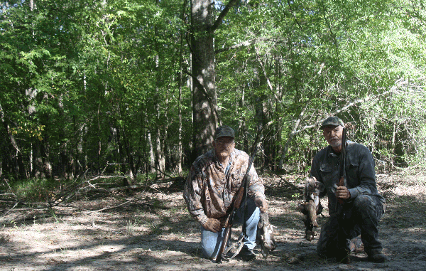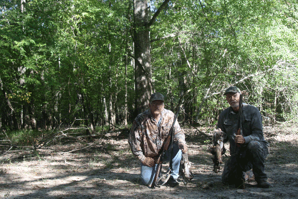 I shot one, and then stood ready in case the other one made a run for it. When he did, I cut loose with my other barrel and knocked him out of the tree, but he skittered across the ground with his tail held high.