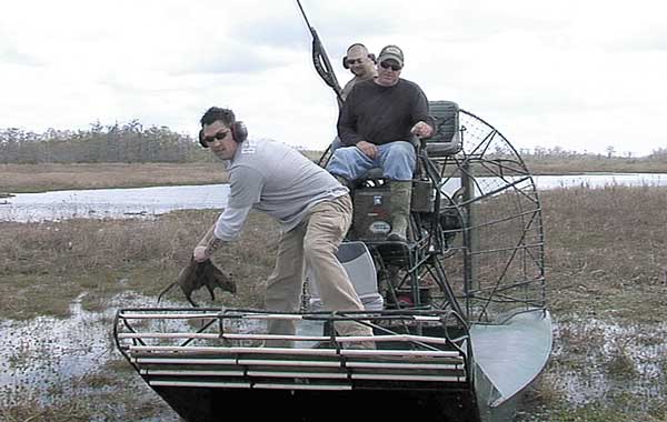 Houma’s Rafe Anthill and his chum Wayne Ponthieux of Black Bayou Airboat Swamp Tours came through with flying colors the next morning, providing the airboats, the hunting grounds and the nutria-control permit from the LDWF that facilitated, legalized and rationalized our fervent “environmentalism.”