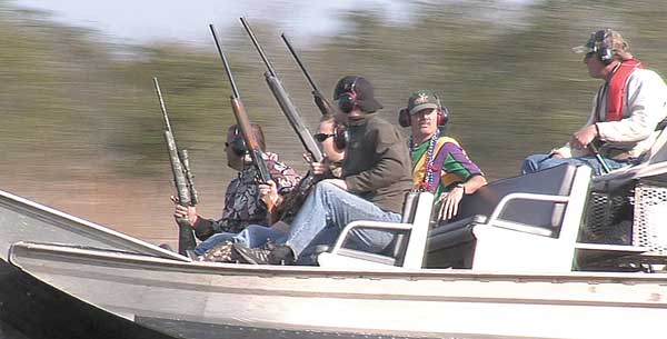 “That means,” I continued, explaining my afterthought to Wild & Raw’s cast and producers, “that we’ll engage in two days of the kind of Wildness and Rawness that would get us thrown in jail anyplace in America — except South Louisiana. We’ll be guzzling booze from open containers on public streets, the whole while ogling gals clothed only in body paint — if that! Next morning we’ll be blasting marshland creatures to our hearts’ content without regard to limits and from moving (almost airborne, in fact) boats!