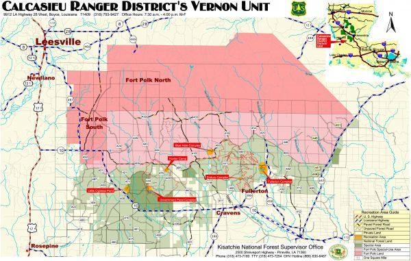 More information on Kisatchie National Forest can be obtained online at www.fs.usda.gov/main/kisatchie/home or by calling any of the ranger district offices. Getting a motor vehicle use map (MVUM) is import to any newcomer because the maps display the National Forest System roads and trails open to motorized travel. Routes not shown on the MVUM are not open to public motor vehicle travel.