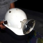 A toggle switch is inserted in a small hole drilled in the helmet, and one of the wires is interrupted to be connected to the toggle switch. After alligator clamps are attached to the other ends of the wires, the light — commonly just called a “seal beam” by Basin froggers — is ready to go.