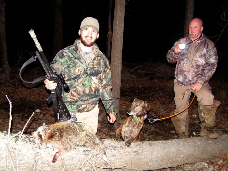 “Either way, most of being a good tree dog is bred into them naturally. When I started Tiger off as a pup, I showed him a couple of raccoons in a cage and let him get the smell. The first couple of times we went, he didn’t do much. But then one night he was treeing coons left and right. It was like a light bulb had gone off. Once they learn what they are supposed to do and that you are going to come and shoot, they just get better and better.”
