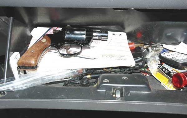 Therefore, if stopped by a law-enforcement officer for a traffic violation, it is a good practice to tell him if you have a gun in the glove box on top of the papers he is requesting. If it is not in such an awkward place, where the cop might understandably get excited if he witnesses you fumbling around for records while putting your hands on a gun, you do not need to tell him of the gun — there is no violation of the law in having the gun in your car.