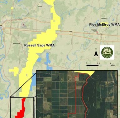 Russell Sage Wildlife Management Area includes acreage in Caldwell, Morehouse, Ouachita and Richland Parishes, and is located approximately 7 miles east of Monroe and 10 miles west of Rayville.