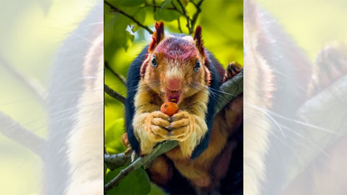 The squirrel, known for its multicolored fur and its large size, became an internet sensation after 39-year-old Kaushik Vijayan took the pictures deep in the forests of India, capturing the animal in its native habitat.