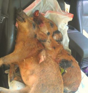 The following Friday I hunted 5 hours with no results until the rain started. After 8 exhausting hours, I had a 160-, 130- and 40- pound boar crammed in my SportRack on top of my SUV.