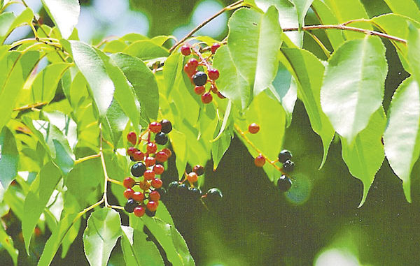 One of these trees, black cherry is a tree that is found throughout the state. Black cherry is a commercial timber variety used primarily for making furniture. In addition to that, it has a high wildlife value; deer will browse the leaves and stems as well as eat the black juicy fruit, and it is a favorite fruit of many songbirds.