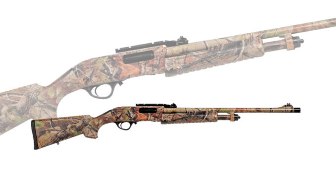 The FieldHunter Turkey is available in Realtree APG and Mossy Oak BottomLand patterns and comes with three interchangeable chokes. The 5-inch optics rail on top of the receiver will accommodate a variety of Weaver mount for additional optics, and sights are green and red fiber for low-light hunting.