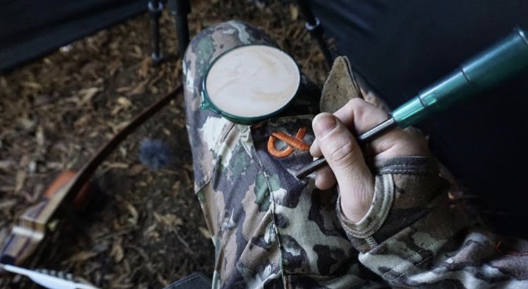 When Carson is chasing turkeys with his shotgun, he sits at the base of the tree, and that’s usually enough. But with his bow, he prefers to use a ground blind because it helps keep him concealed as he’s drawing back.