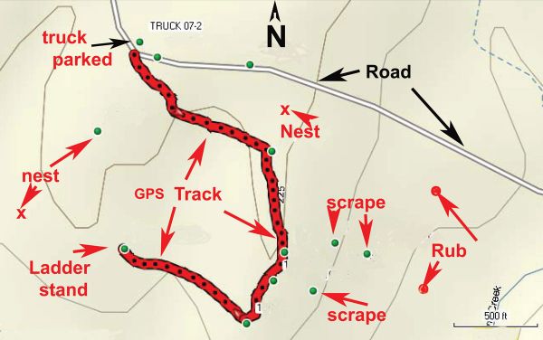 By marking these locations with your GPS unit, you will be able to see where the most-productive hunting areas are located what areas to avoid because of no activity or hazards. You might end up moving your stand to one of the new found areas.