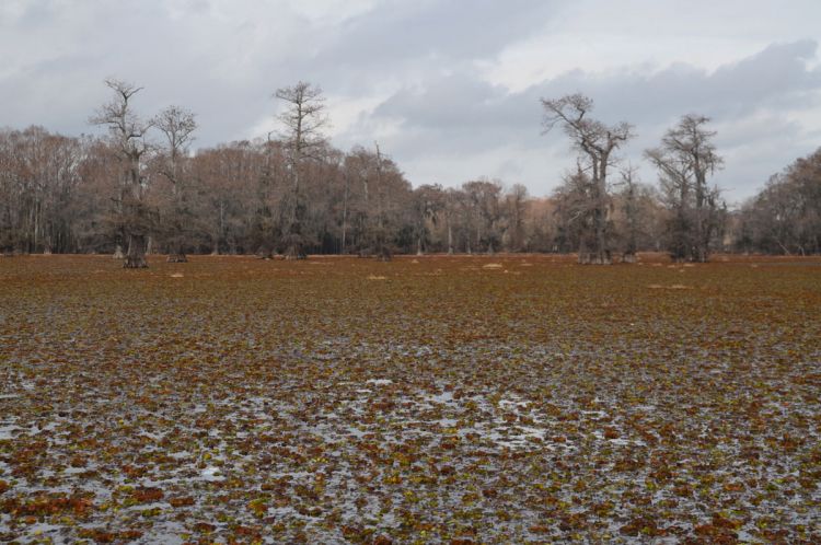 • Like many Louisiana reservoirs, Caddo Lake was flooded while its trees were still standing. Over the years they have rotted off near average water level, leaving the lake with thousands of stumps, often just below water level. Hunters should use marked boat lanes (boat roads) to travel near the areas they wish to hunt, and then idle in.