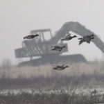 The crisp cold temperature, the light overcast and breezy conditions had birds on the move. The expanse of agricultural prairie swelled with the wild sounds of geese calling to one another in the atmosphere above.
