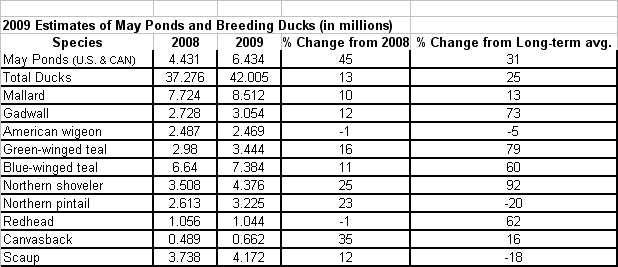 Greatly improved habitat conditions increase ducks for 2009