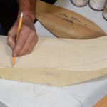1) Lay out the pattern of the side view of the decoy using a pencil, with or without a pattern board.