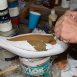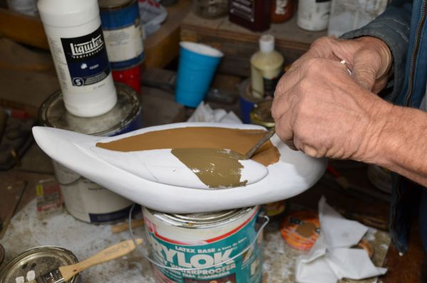 19) To prevent the finished decoy from absorbing water, us a paintbrush to apply three coats of Deft Satin Brushing Lacquer to the entire decoy, including the eyes. Allow each coat to dry several hours before applying the next coat. With another brush, apply two coats of Liquitex Professional Gesso 1 ½ hours apart.