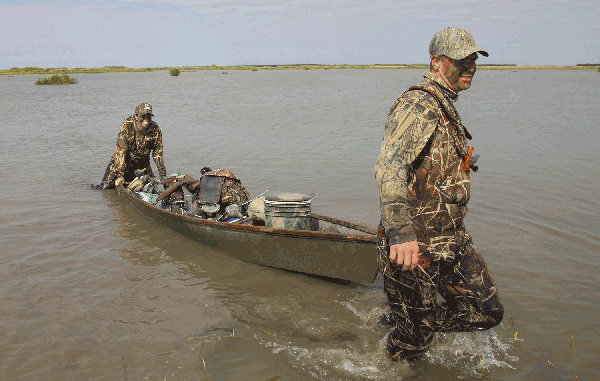 Hunters should plan to bring a pirogue, push pole and paddle, if only to haul gear on the limited-access area. The ’rogue can then be usied as a platform to keep equipment from getting wet as the tide rises during your hunt.