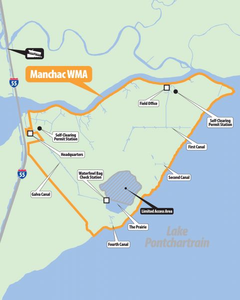 While there are many good locations around the WMA, most waterfowl hunting takes place on an 800-acre body of open freshwater known locally as “the Prairie” next to the Lake Pontchartrain shore.