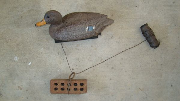 I ran a line out to one of my decoys anchored through a brick: When a duck flew by, I would yank the line, making the decoy bob up and down to create ripples in the decoys.