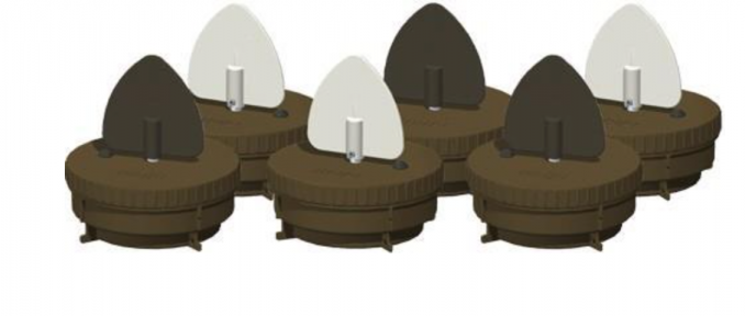 The Flock A Flickers can be used in water and on dry fields, and operate up to 30 hours on 3 AA batteries.