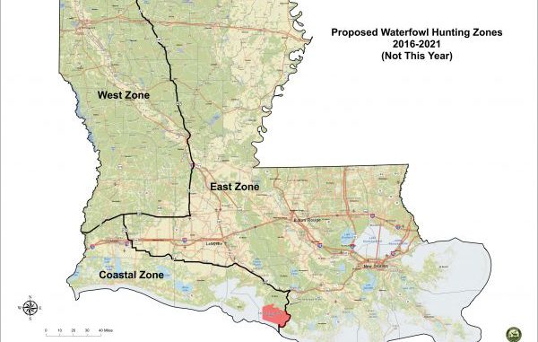 The entire Southeast Louisiana coast — including all of Lafourche Parish — would move into the East Zone for 2016, and large swaths of rice fields in Vermilion, Acadia and Jeff Davis Parishes currently in the Coastal Zone would also move into the East Zone next season if proposed waterfowl hunting zone boundaries are ultimately approved by the Louisiana Wildlife and Fisheries Commission at their next meeting on Nov. 5.