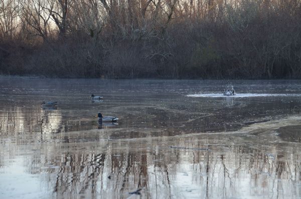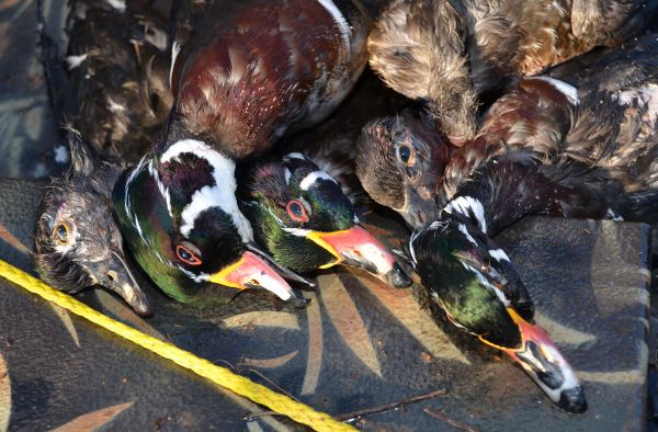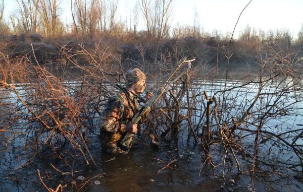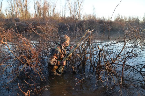 Blinds weren’t necessary: The hunters simply stood in the water, nestled into brush surrounding the hole.