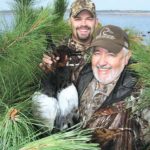 The blinds are simply camouflaged with pine boughs (oddly, that’s the brush of choice on the lake), and anchored in place.