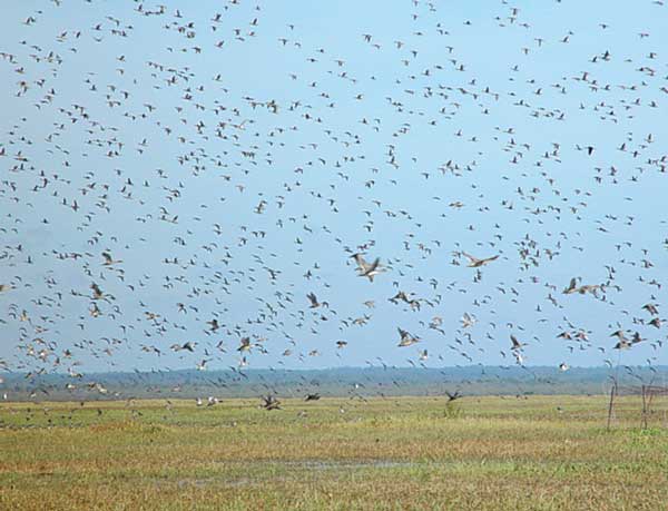The lake is drawn down annually to encourage the growth of indigenous grasses, primarily sagittaria (duck potato), chufa, walteri millet and spangletop. The result is a virtual sea of duck groceries, which is then flooded just before the fall migration.