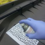 Masking tape should be applied to protect anything not to be painted, such as the kayak’s carrying handles.
