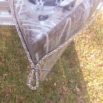 A small loop in the paracord should be made with a cable tie at the bow of the boat. The loop makes it easy to identify the bow end of the ghillie suit when placing it on boat. It also comes in handy to hang the suit to wash it and let it dry.
