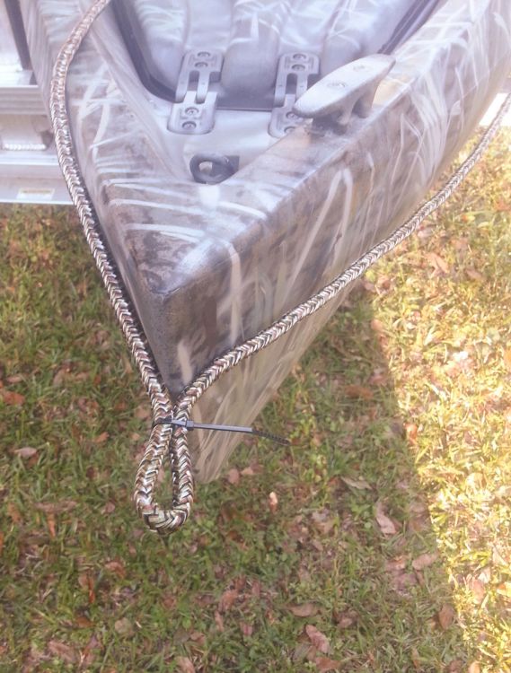 The two free ends of the paracord at the stern should be overlapped and tightly secured to each other with a couple of cable ties.