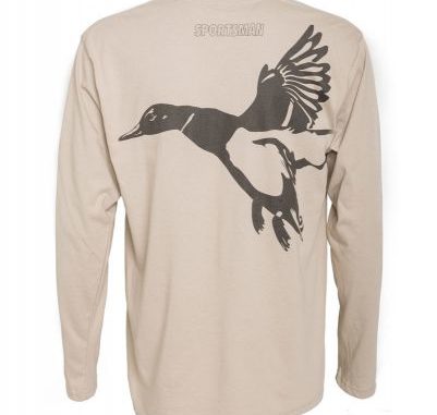 The latest Sportsman T-shirt line includes this shirt made exclusively for duck hunters. The long-sleeved T-shirt is made of high-quality performance cotton and features a flying mallard across the back.