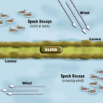As far as decoy set up, Campbell notes the importance of keeping the goose decoys separate from the bulk of duck decoys. And though you won’t need nearly the quantity of duck decoys, Campbell is a firm believer in using the most realistic speck decoys one can afford.