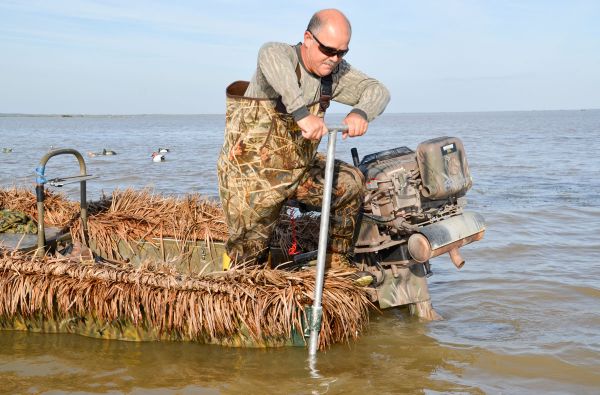 Hunters often hide the top of the motor and bow, but neglect the sides; approaching ducks see the side of the boat and motor, as well as their tops.