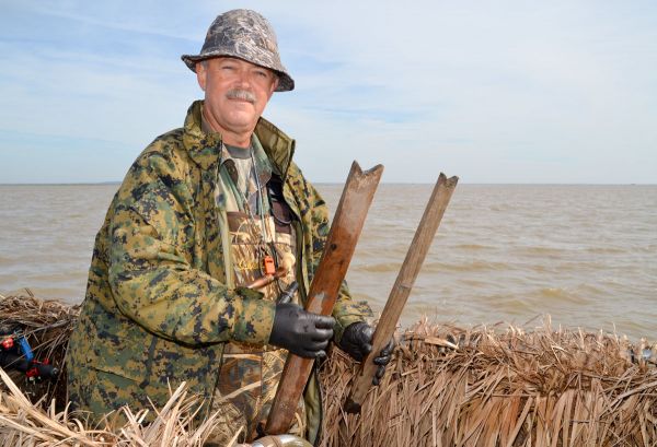 The horizontal pipe supporting the 14-foot stretch of blind in their boat sagged several inches in the middle. Inserting a notched 1-inch-by-2-inch board vertically under the pipe both raised the wall and strengthened it, solving the problem of unknowing guest hunters putting their weight on the fragile pipe.