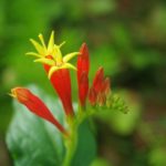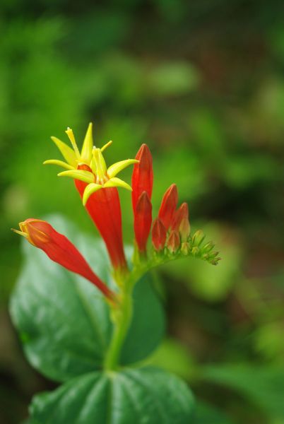 Many years ago, I collected the plant and put it in the flower bed in our yard in Baton Rouge. Every spring the stems with opposite leaves would emerge, and by late spring the plant had produced its showy flowers; the corolla tubes are bright red on the outside and yellow on the inside.