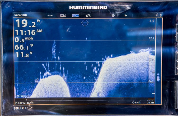 His unit of choice is a Humminbird Solix 12, and he said it’s indespensible to this way of fishing.