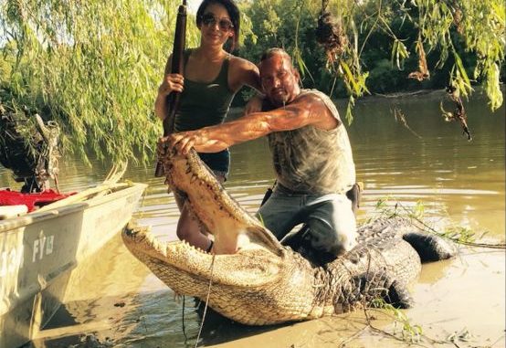 “On the Texas side, there’s a big canal off the river that goes up into a 10,000-acre flooded out swamp, and I knew that’s where the big gators were living,” he said. “So what I did was drew him out of that side all the way over to our side to catch him.”