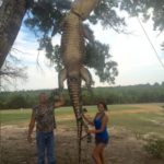 As expected there was no action all week long, and on Saturday Rivers put fresh bait on the hooks. Sunday morning his persistence paid off — on the exact same tree he caught the first 14-footer.