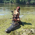 Rivers got in the boat and readied the gator for Christina’s kill shot, which she planned to deliver this time with her bow and a Muzzy fixed broadhead.